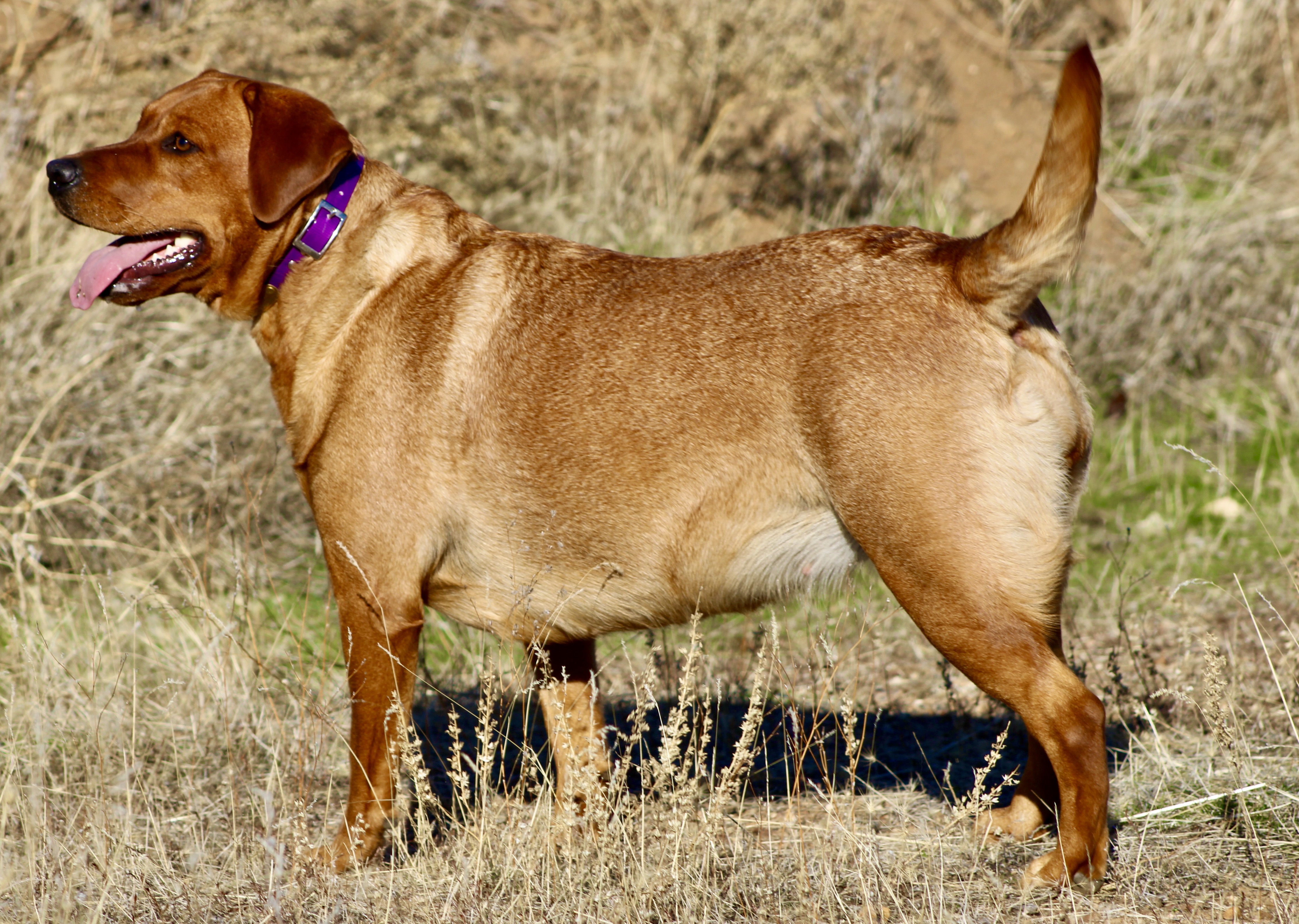 Tonka was born July 7th, 2015, as the result of a great breeding between GMPR Stosh’s Red Pointing Risky Ryder and Stosh’s Red Pointing Isabella in Holland, Michigan. Tonka is an intelligent and good-looking 66-pound dark fox red male. Those who know him love his friendly, fun-loving personality. In the field he is an independent worker with a good thorough search style, a staunch natural point and a strong prey drive, making him an excellent stud to produce great upland pups. When he is working he aims to please with his people-focused attitude and intelligent, trainable personality. But he also has a calm side that loves affection once he has deemed you a friend.